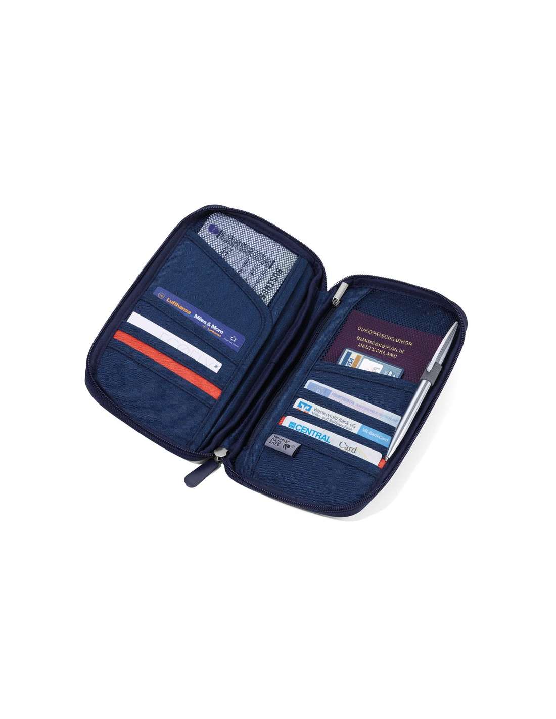 Étui pour documents de voyage, avec un film de protection de lecture (pour les puces RFID), fermeture à glissière, 12 compartiments intérieurs, boucle de stylo, polyester, bleu foncé/orange