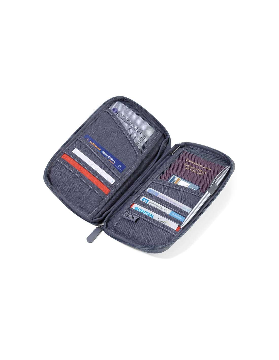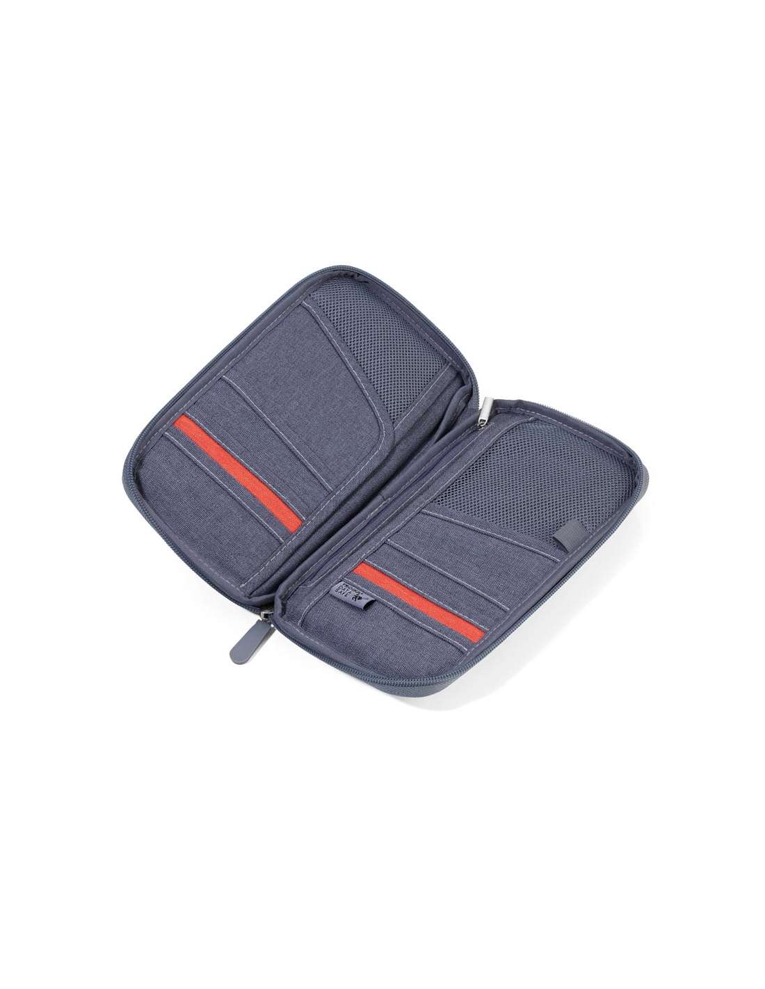 Étui pour documents de voyage, con plástico de protección avec un film de protection de lecture (pour les puces RFID), fermeture à glissière, 12 compartiments intérieurs, boucle de stylo, polyester, gris/orange