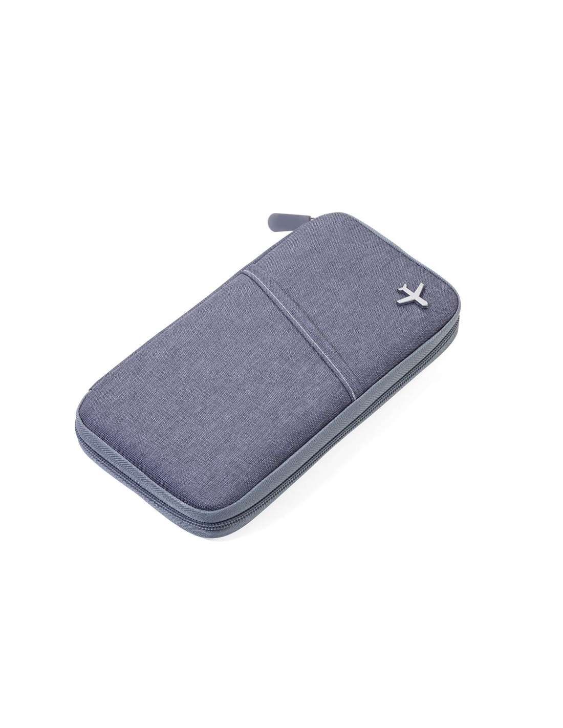 Étui pour documents de voyage, avec un film de protection de lecture (pour les puces RFID), fermeture à glissière, 12 compartiments intérieurs, boucle de stylo, polyester, bleu foncé/orange