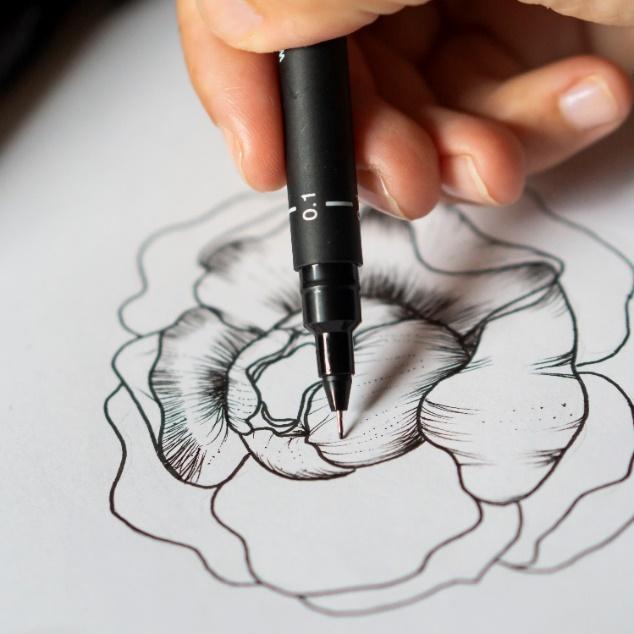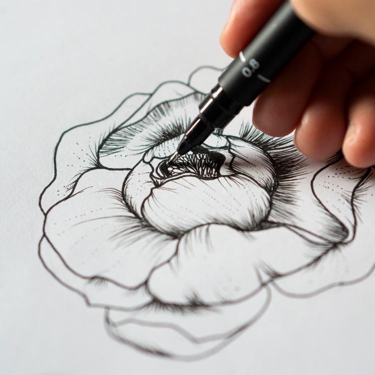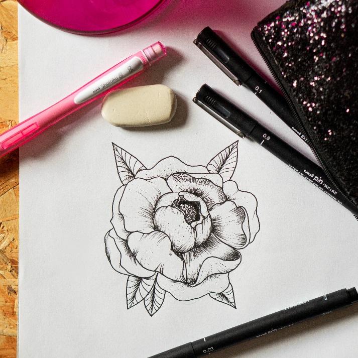 - 3 feutres de dessin Uni Pin, pointes 0,8, 0,1 et 0,05 ; vous pouvez bien sûr utiliser plus de tailles de pointe pour maximiser la variation des profondeurs dans les lignes de votre dessin.