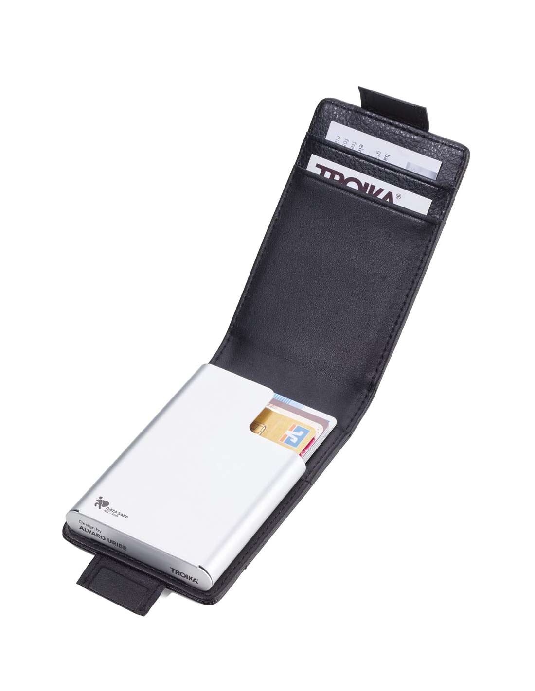 Etui pour cartes de crédit incl. case en aluminium avec protection de lecture (pour les puces RFID), capacité 10 cartes env., 2 compartiments extérieur, 3 compartiments intérieur, fermeture magnétique, aluminium, cuir, similicuir, mat, argenté/noire