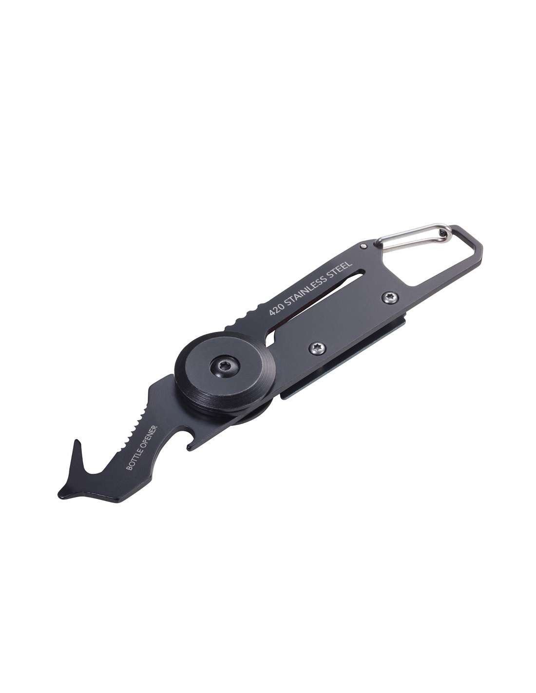 Mini-outil à 5 fonctions, couteau de poche, mousqueton, petite lame de scie, tournevis plat, ouvre-bouteille, acier inoxydable 420, aluminium, couleur titane/noire