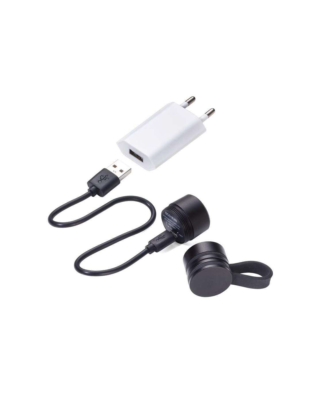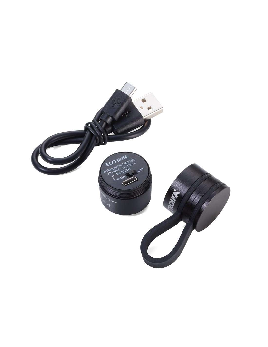 TROIKA ECO RUN Lampe de poche avec lumière LED, 3 fonctions d'éclairage, incl. câble de charge, noir