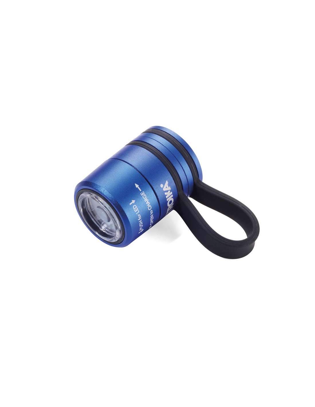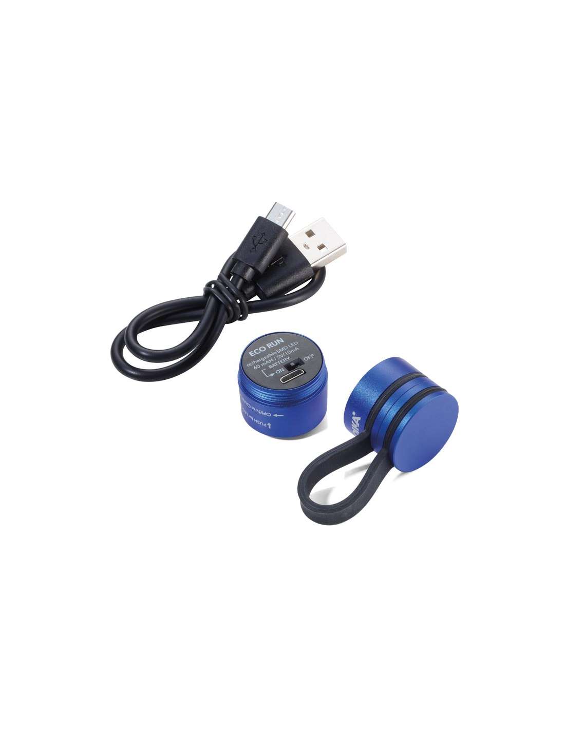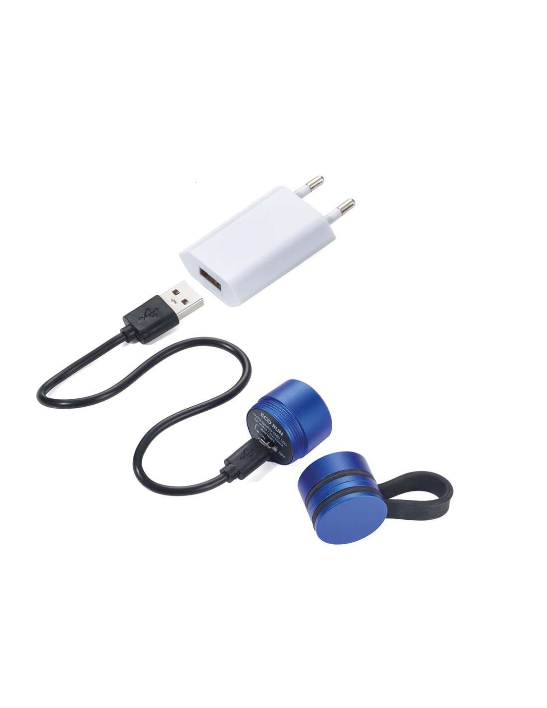 Lampe de poche, lumière de sport et de sécurité, avec un fort aimant pour la fixation, lumière LED blanche, 3 fonctions lumineuses: 2 intensités lumineuses, lumière clignotante, écologique puisque rechargeable via USB (3,7 volt - 0,22 watt), batterie lithium-polymère 60 mAh, protection contre les surcharges/limiteur de décharge, incl. câble de chargement, aluminium, silicone, mat, bleu/noire