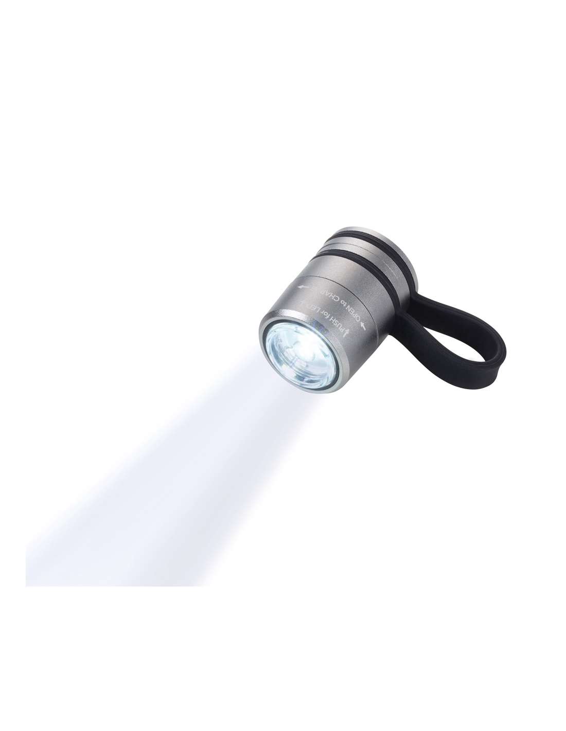 Lampe de poche lumière de sport et de sécurité (témoin lumineux), 5 fonctions d'éclairage: 100% de lumière + 50% de lumière (lumière LED blanche), allumée en continu, rapide + clignotement lent (lumière LED rouge), Accessoires: 1 clip de ceinture, 1 sangle en silicone flexible pour la fixation (par exemple sur un vélo, un déambulateur, une poussette, un sac à dos), 1 bande élastique réglable à utiliser comme lampe frontale, batterie lithium-polymère 200 mAh, écologique puisque rechargeable via USB-C (3,7 volt), incl. câble de chargement, protection contre les surcharges/limiteur de décharge, aluminium, silicone, mat, couleur titane/gris/noire