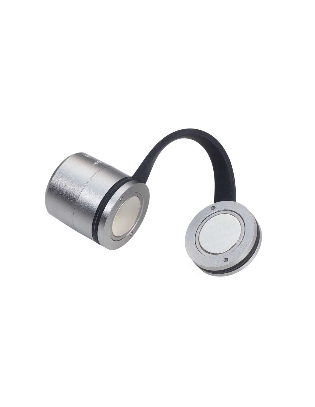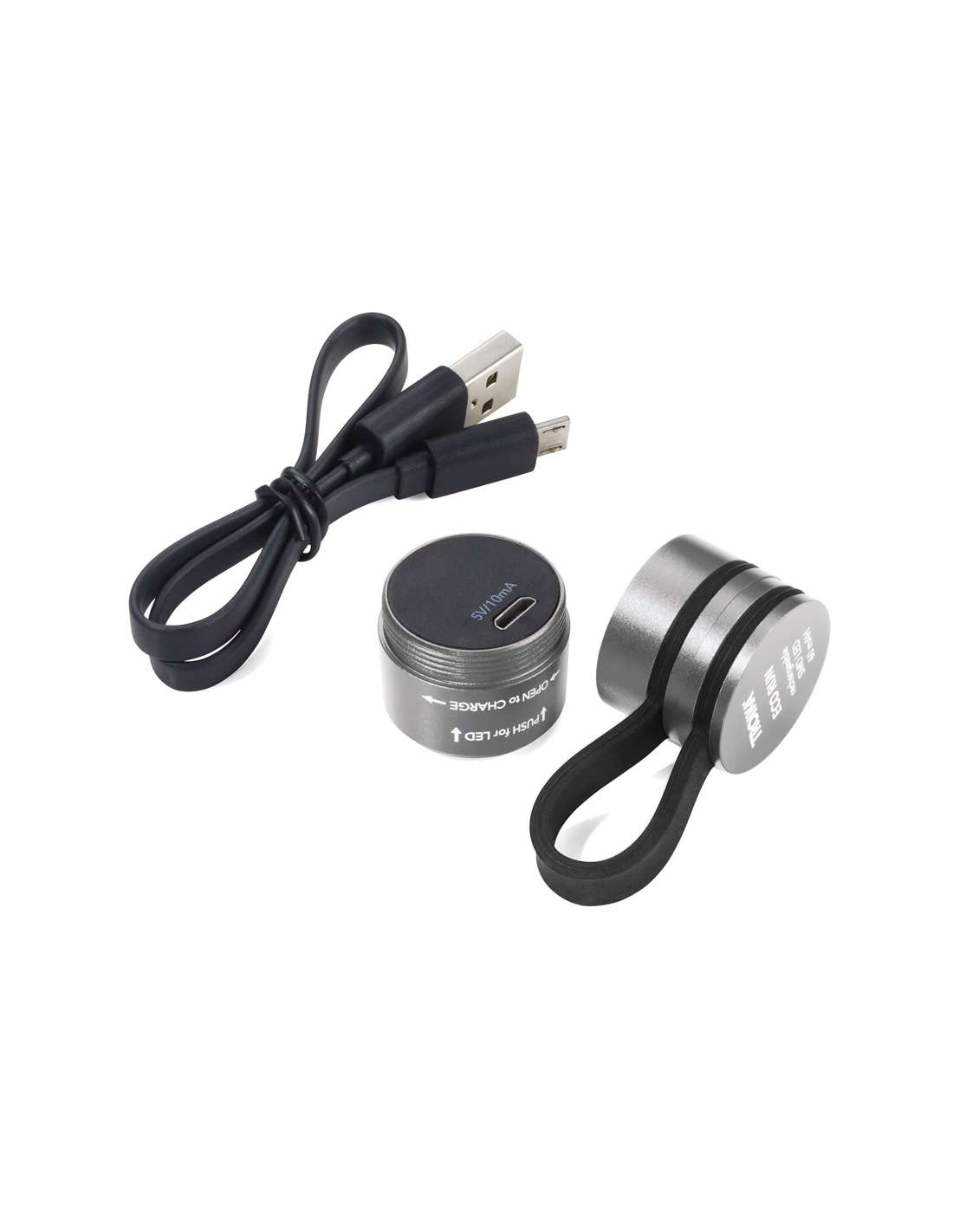 Lampe de poche, lumière de sport et de sécurité, avec un fort aimant pour la fixation, lumière LED blanche, 3 fonctions lumineuses: 2 intensités lumineuses, lumière clignotante, écologique puisque rechargeable via USB (3,7 volt - 0,22 watt), batterie lithium-polymère 60 mAh, protection contre les surcharges/limiteur de décharge, incl. câble de chargement, aluminium, silicone, mat, couleur titane/noire
