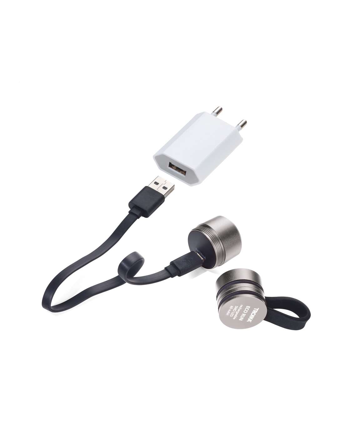 TROIKA ECO RUN Lampe de poche avec lumière LED, 3 fonctions d'éclairage, incl. câble de charge, noir