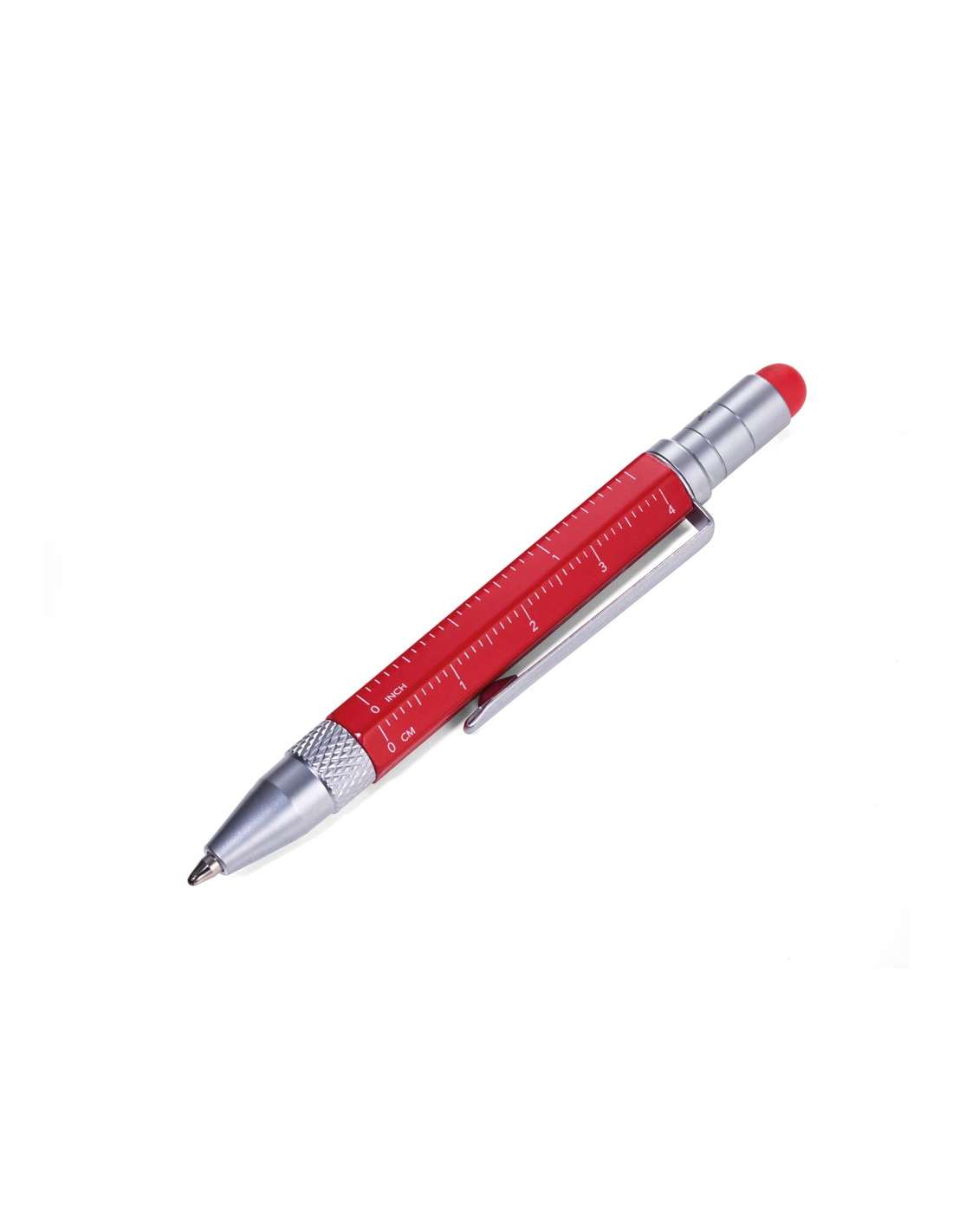 Bloc-notes DIN A7 incl. stylo à bille, fermeture à bande élastique, boucle de stylo, signet, règle en relief (10 cm) sur couverture, papier certifié FSC, côtés perforés, matrice de points, compartiment pour les documents, stylo à bille multitâche CONSTRUCTION LILIPUT (petit), mine noire, métal, similicuir, mat, rouge